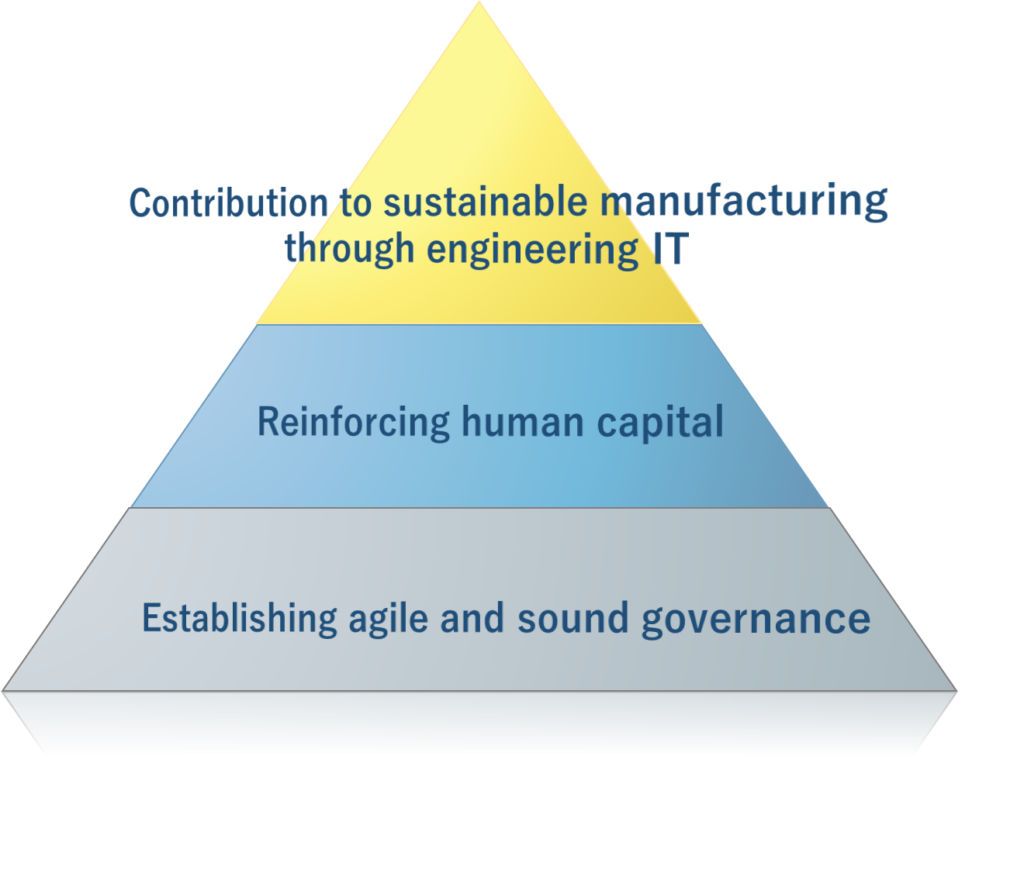 We will strengthen our investment in development of solutions that make product development smarter (intelligent) and more efficient, and contribute to solving issues surrounding manufacturing, such as technology transfer, human resource shortages, and reduction of environmental impact. We will also utilize our engineering IT expertise to expand services that support the development and reskilling of digital human resources within our customer companies.